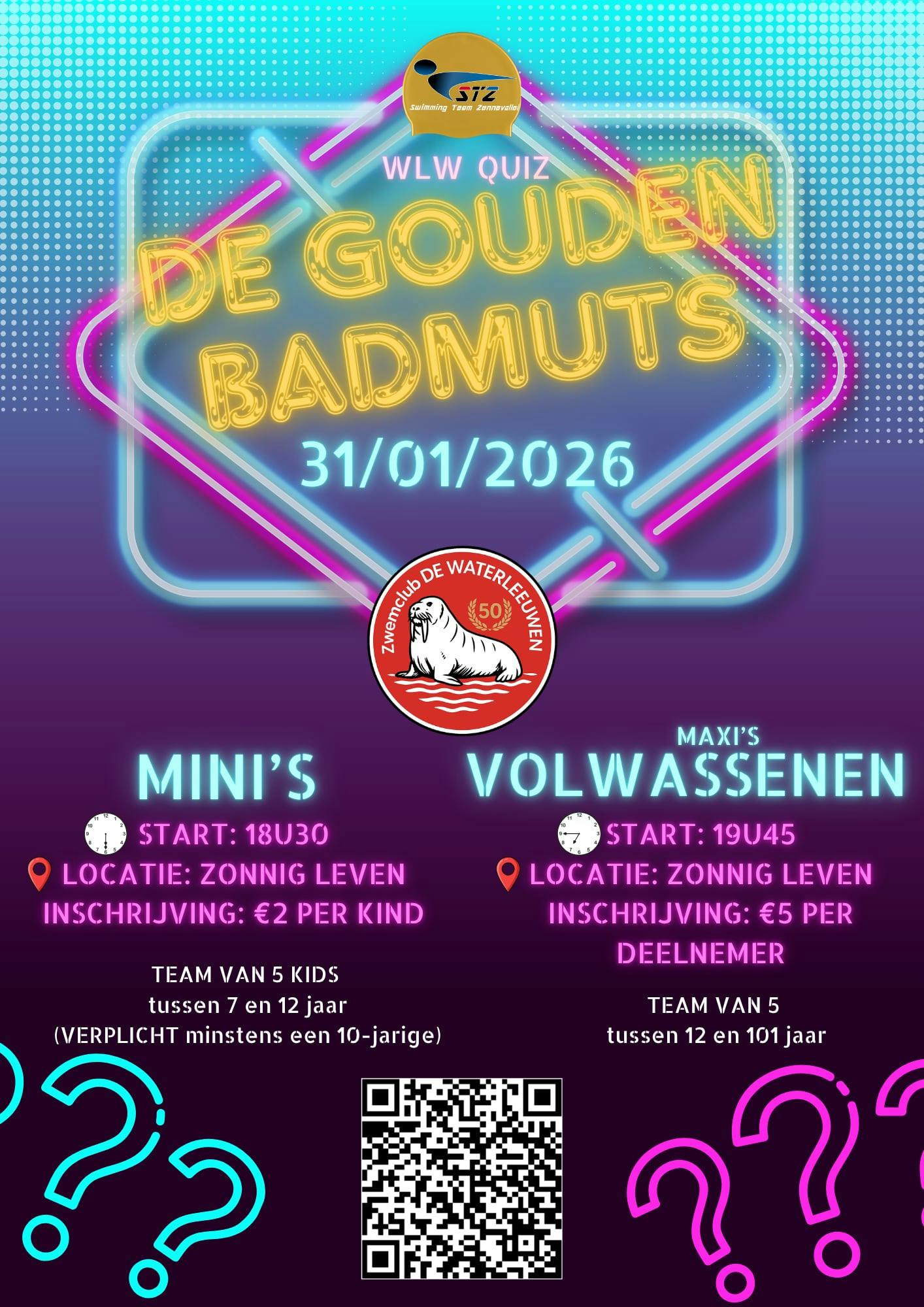 Voor het 50-jarig bestaan van Zwemclub De Waterleeuwen organiseren we een gezellige en uitdagende quiz voor volwassenen.