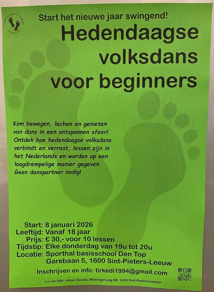 Kom bewegen, lachen en genieten van dans in een ontspannen sfeer! Ontdek hoe hedendaagse volksdans verbindt en verrast, lessen zijn in het Nederlands en worden op een laagdrempelige manier gegeven. Geen danspartner nodig! Geen voorkennis nodig, enkel veel goesting.