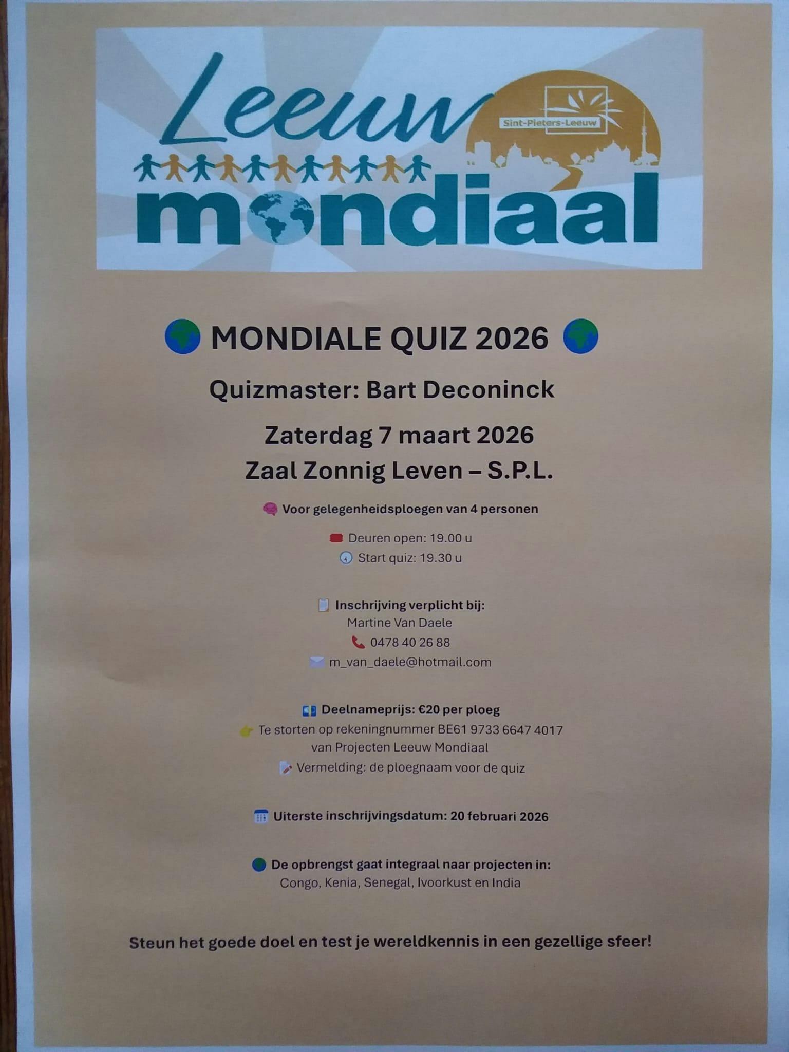 Op 7 maart 2026 organiseren wij voor de eerste maal onze Mondiale Quiz.