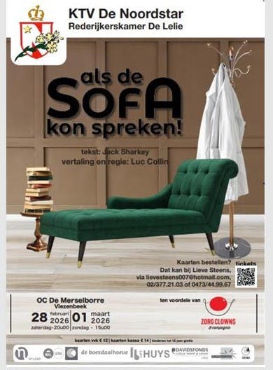 Een schitterende samenwerking tussen toneelkring De Noordstar en vriendenkring clownzorg Sint-Pieters-Leeuw waarbij de opbrengst, inclusief bar tijdens de pauze, volledig naar de vzw zorgclowns gaat! U komt toch ook!!