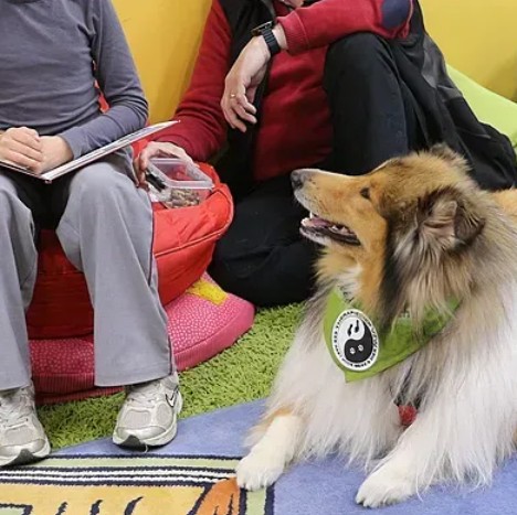 Lees een verhaal voor aan leeshond Finn en beleef een onvergetelijke leeservaring! Vind je hardop lezen best uitdagend, dan is voorlezen aan een leeshond fijn. Hij luistert aandachtig en wijst je niet op foutjes. Ook voor wie goed leest, wordt het een bijzonder moment. Finn is therapiehond en wordt begeleid door zijn baasje Rudi.