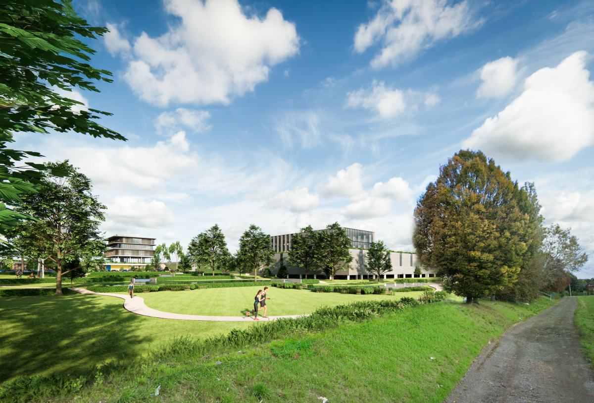 In Sint-Pieters-Leeuw zijn de krijtlijnen voor de toekomstige ontwikkeling uitgezet. De site, gelegen langs belangrijke invalswegen richting Brussel, krijgt een multifunctionele invulling. De grijze vlakte van 8,5 ha maakt plaats voor een groen-blauwe omgeving met park, hoogwaardige kantoren en publieke functies aangevuld met retail, leisure en lokale bedrijven.