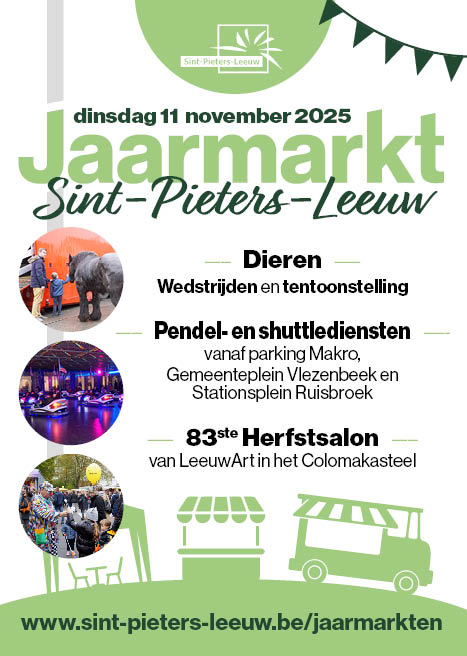 Op dinsdag 11 november organiseert Sint-Pieters-Leeuw haar traditionele jaarmarkt, een vaste waarde in de kalender die je niet mag missen.
