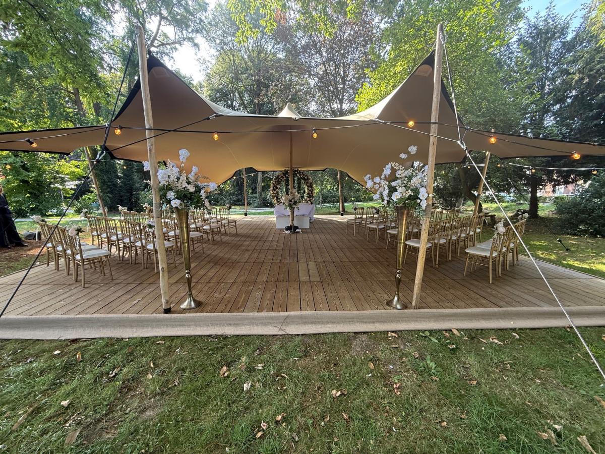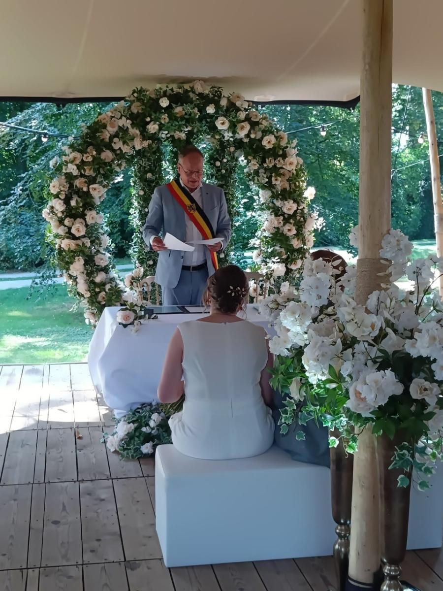 Tijdens de zomer van 2025 hebben we dit één keer getest. Dat was zo’n succes dat we het vanaf 2026 op vier opeenvolgende zaterdagen aanbieden. Omdat een huwelijk op deze unieke locatie extra kosten meebrengt, vragen we een bijdrage van 300 euro in plaats van de 70 euro voor een huwelijk op het gemeentehuis of in het Colomakasteel. Het blijft uiteraard een vrije keuze.